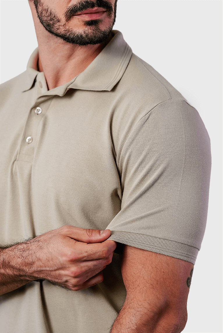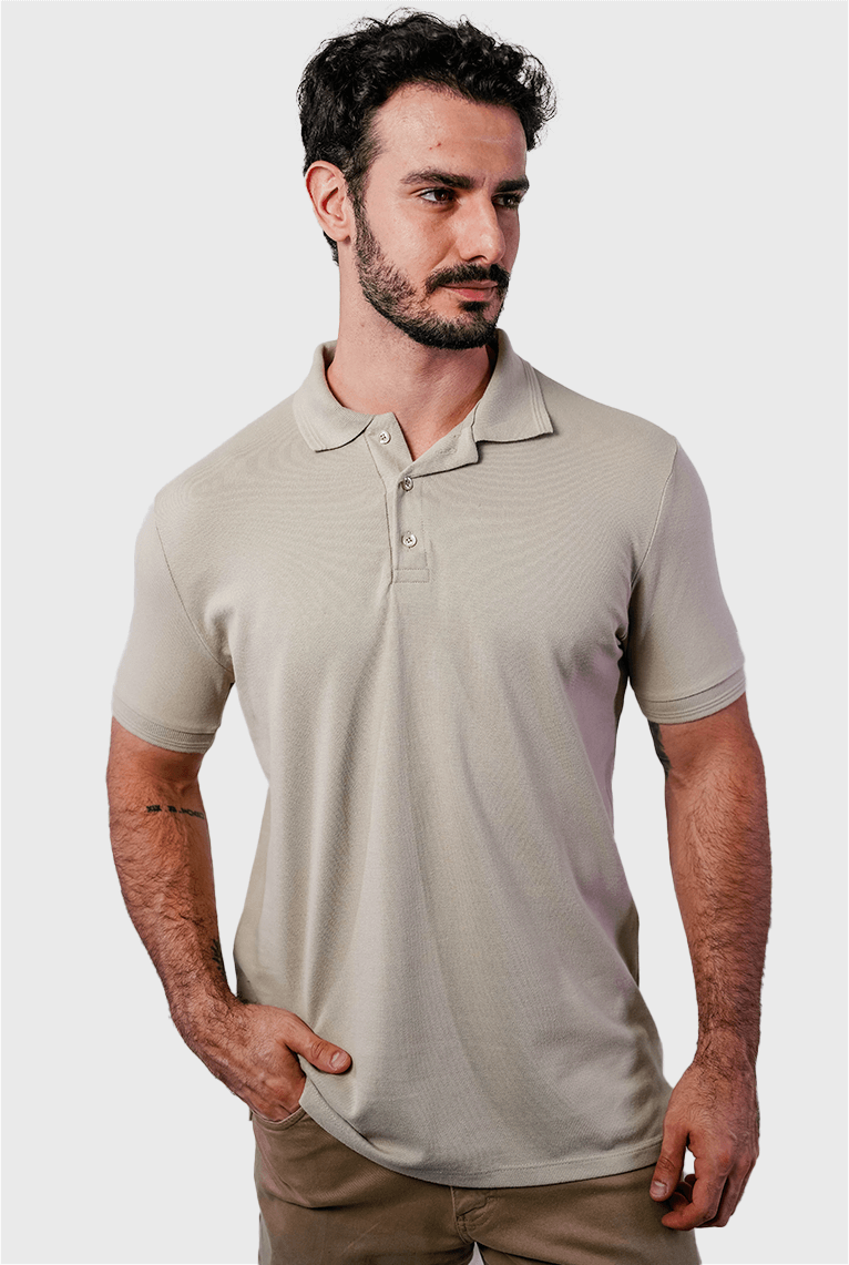 Polo Piquet Gold Contínua Bege Lisa